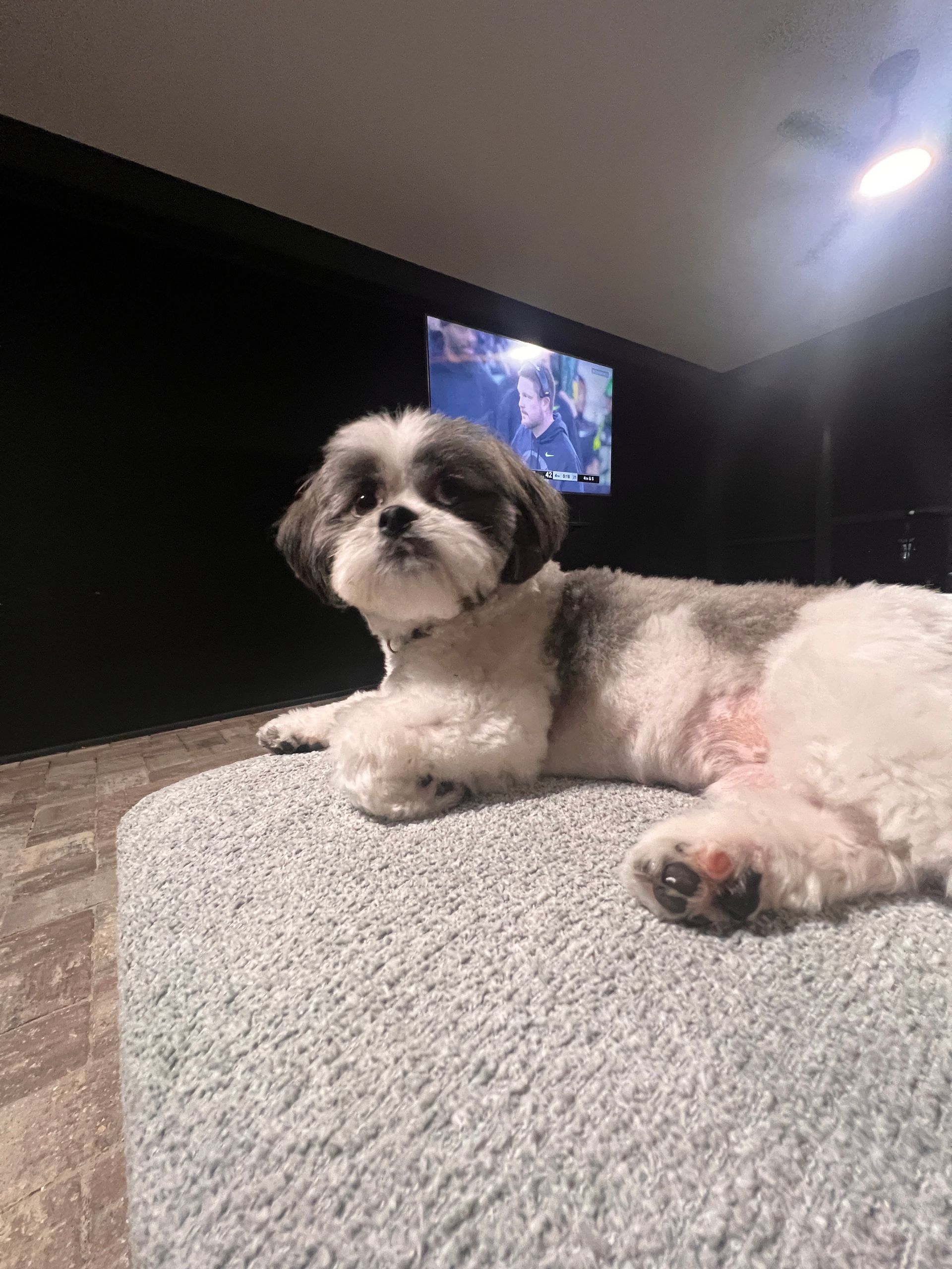 This week we have Obi ( short for Obi-Wan Kenobi ) lounging on Sunday night and enjoying some NFL games. Although he looks calm in this photo he is truly a wild one who loves to play.