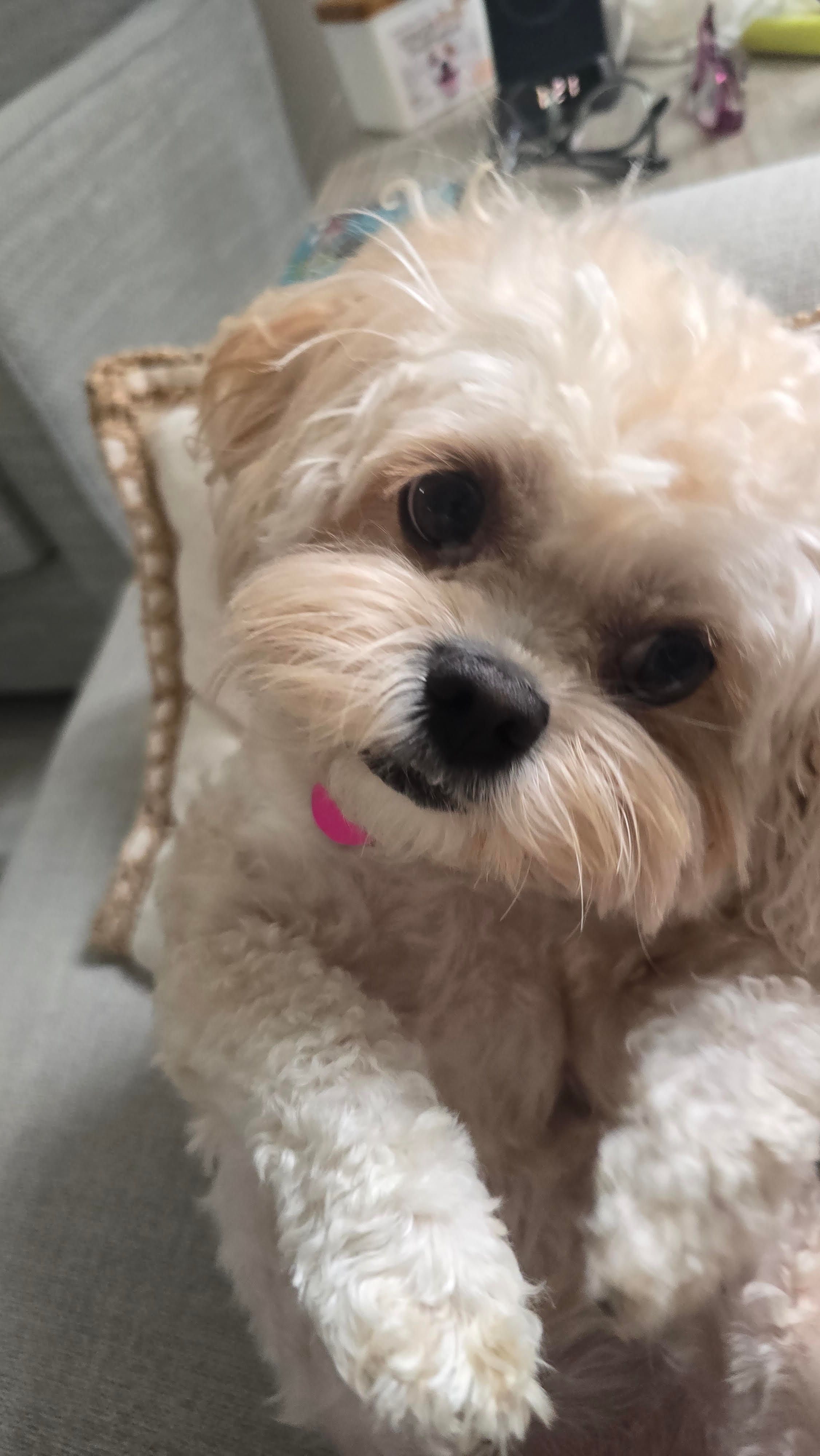 This week we are featuring Cali the teddy bear! The breed is actually a Malshi (Maltese and Shitzu). Can we appreciate that head tilt? Planned it or candid?
