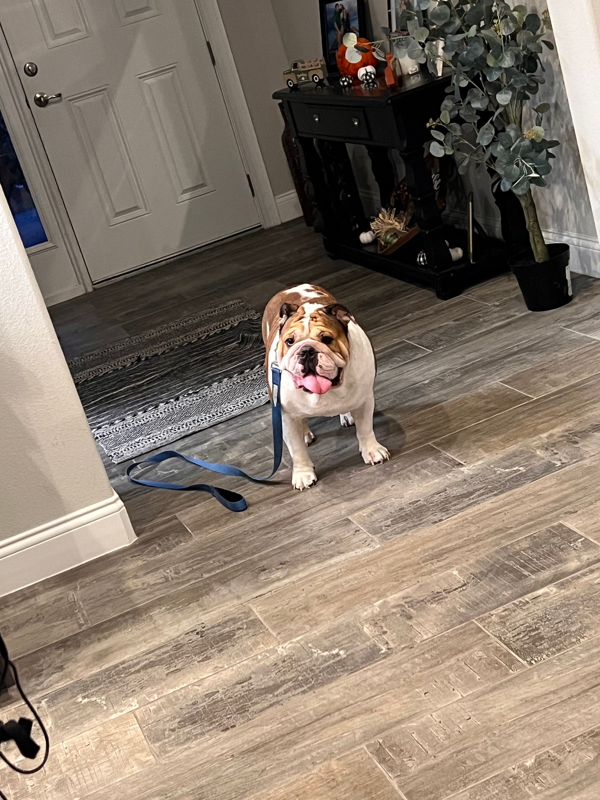 This week we have Thor the bulldog. He was ready for his walk as you can tell, his favorite thing to do on walks is chase the dragon-flys. So this cold weather hasn’t been his friend.