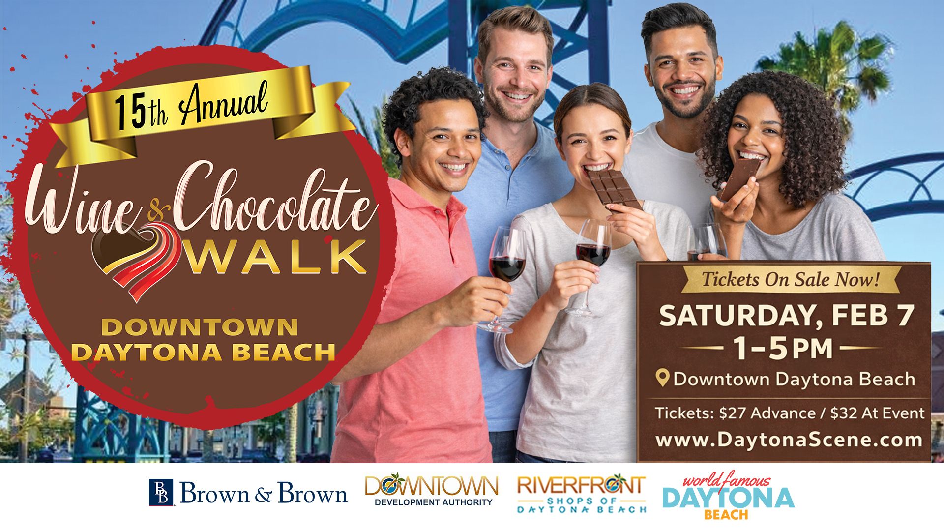 This is the 15th annual Wine & Chocolate Walk on Beach Street on Saturday 1-5pm. This will be another busy week, as the night before you have Downtown Daytona nights followed by this great event.